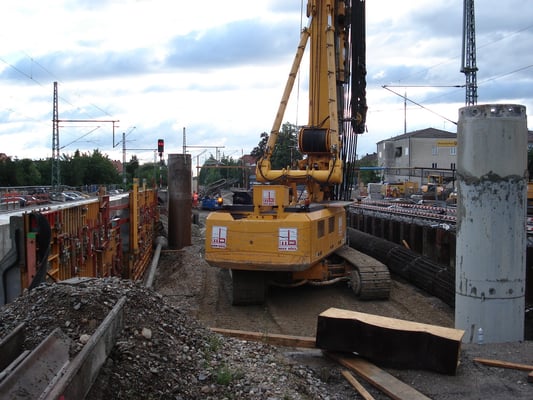 Bohrpfahlherstellung Inselbaustelle zwischen DB-Gleisen
