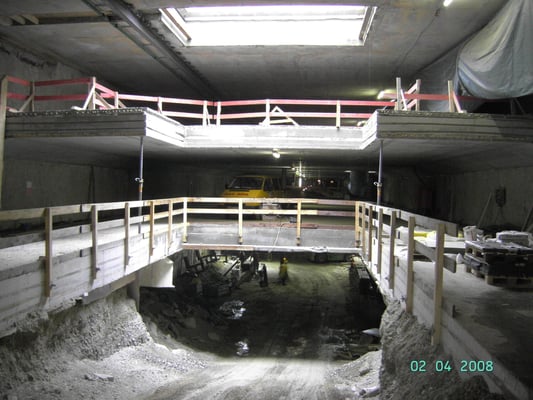Das Bauwerk wurde in Schlitzwand- und Bohrpfahldeckelbauweise erstellt.
