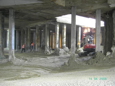 Aushub Schalterhalle mit temporären Stützen