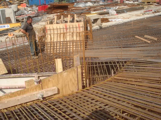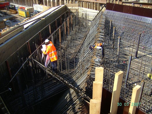 Photo above: Reinforcing top slab of ticket hall on the island site