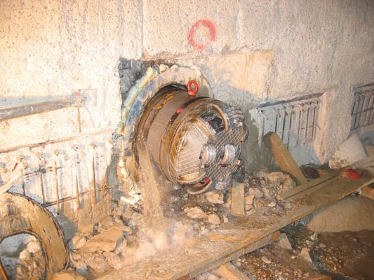 Photos below: Core drilling through diaphragm wall for piping of ground water shaft