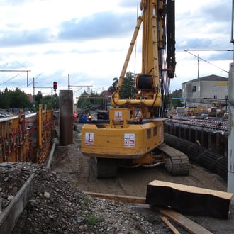 Boring piles on the island site between tracks of German Rail